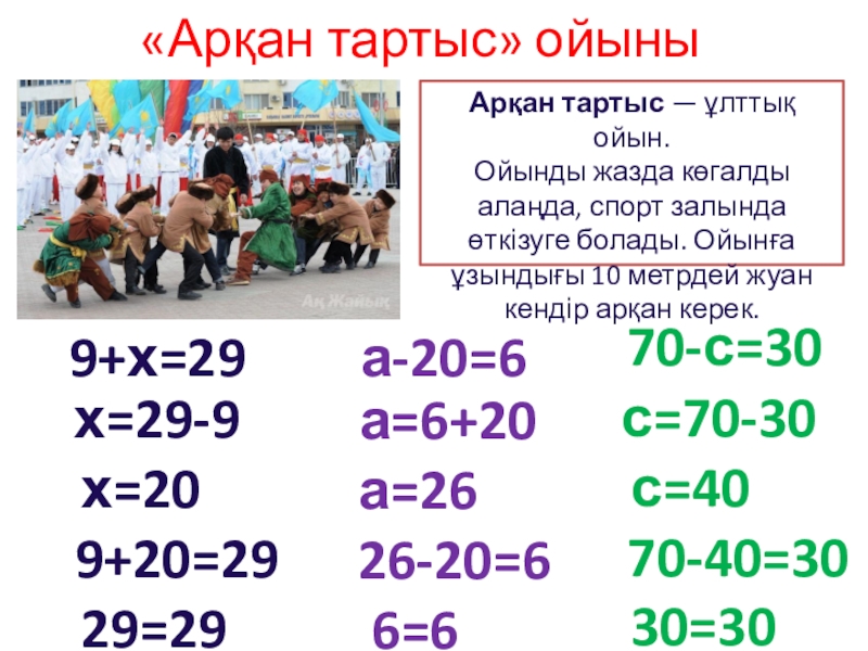 57 мен 7 сандарының айырмасынан а-ны азайту, а=2;