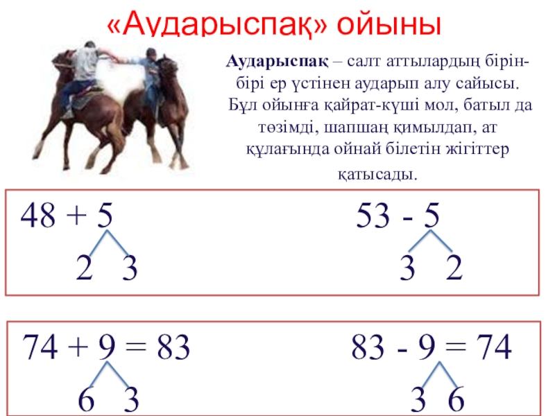 Аударыспақ – салт аттылардың бірін-бірі ер үстінен аударып алу сайысы.