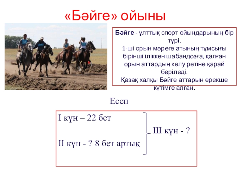 Бәйге - ұлттық спорт ойындарының бір түрі.