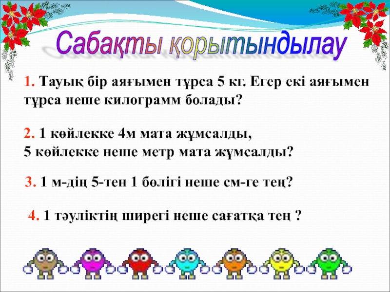 3. 1 м-дің 5-тен 1 бөлігі неше см-ге тең?
