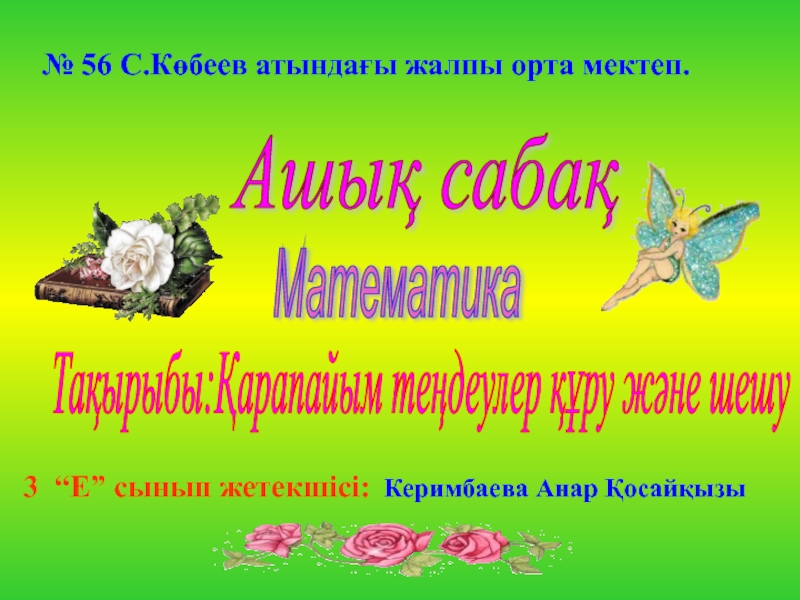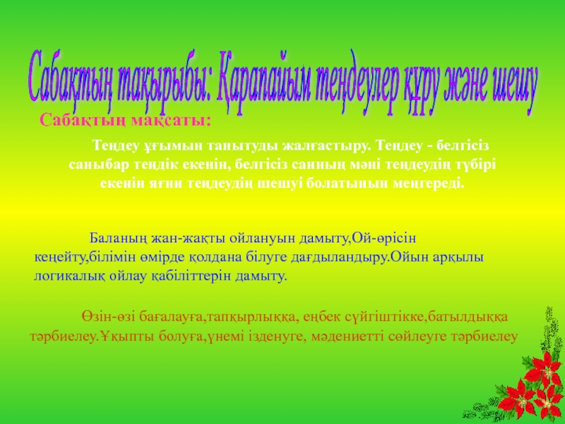 Сабақтың тақырыбы: Қарапайым теңдеулер құру және шешу
