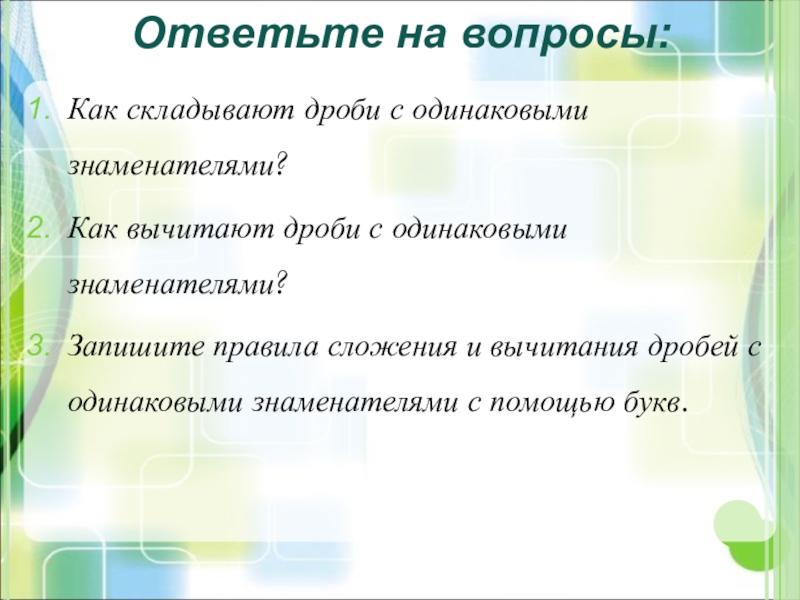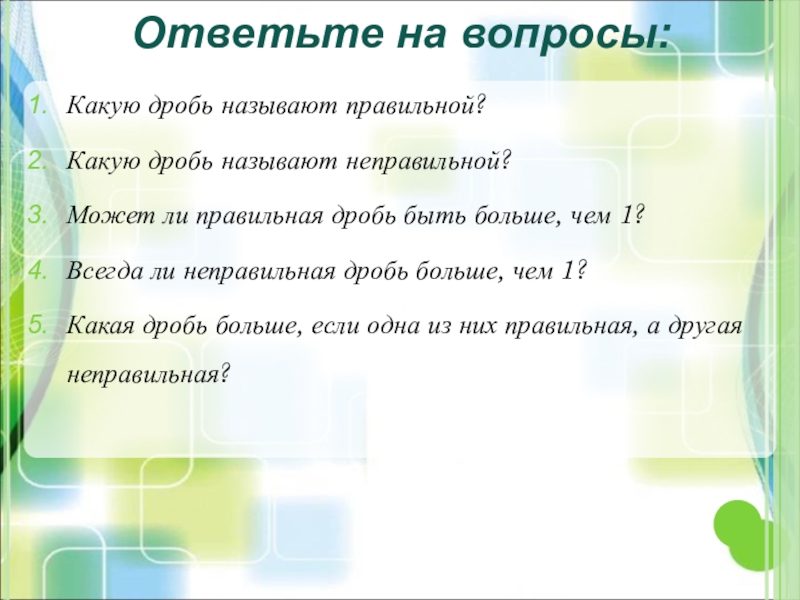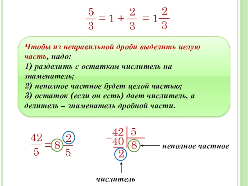 Дробь, в которой числитель больше знаменателя или равен ему, называют неправильной дробью.