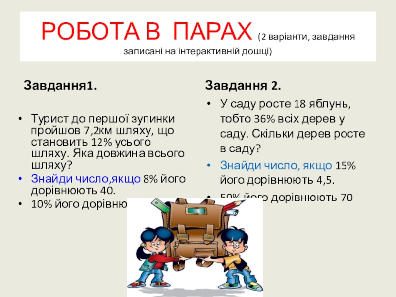 Знаходження числа за його відсотками