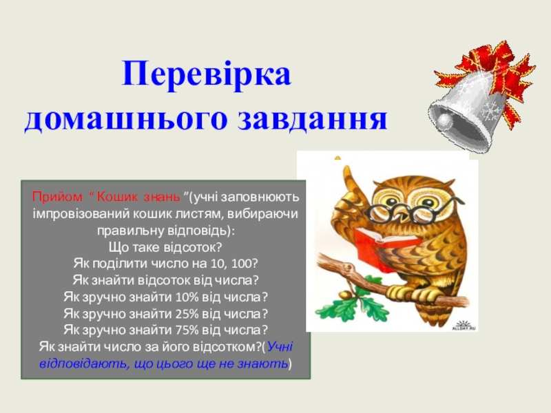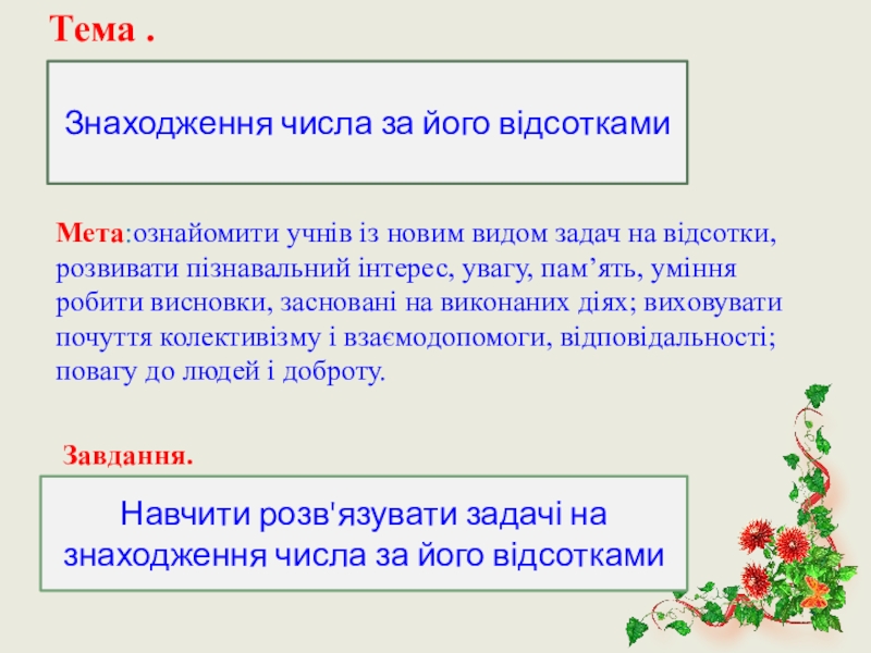 Навчити розв'язувати задачі на знаходження числа за його відсотками