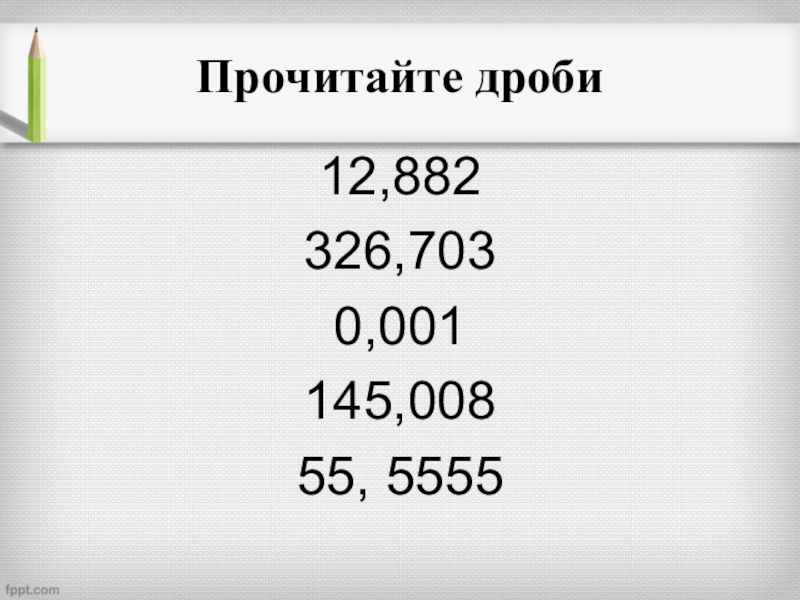 Прочитайте дроби12,882 326,703 0,001 145,00855, 5555