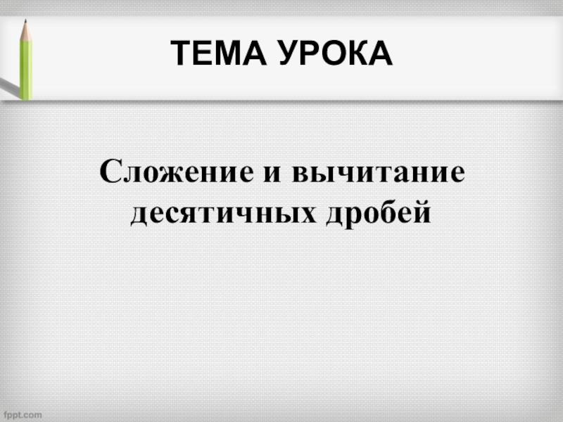 Слайд 1 «Сложение и вычитание десятичных дробей»