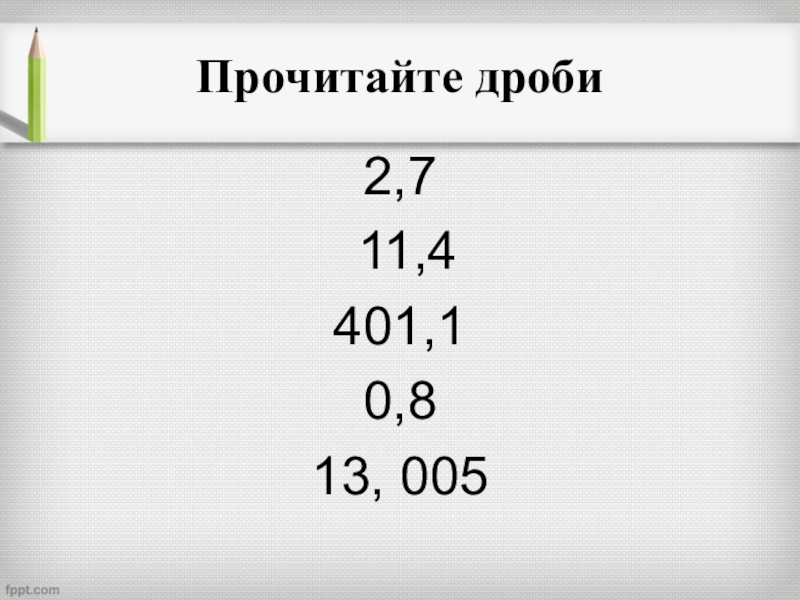 Прочитайте дроби2,7 11,4 401,1 0,813, 005