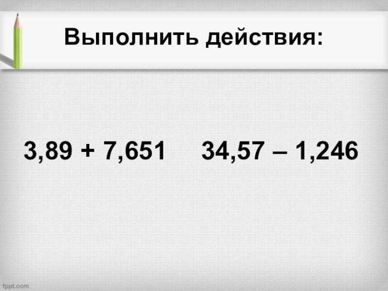 Выполнить действия:3,89 + 7,65134,57 – 1,246