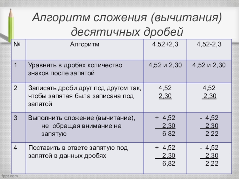 Слайд 17Алгоритм сложения (вычитания) десятичных дробей