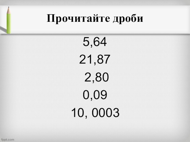 Прочитайте дроби5,64 21,87 2,80 0,0910, 0003
