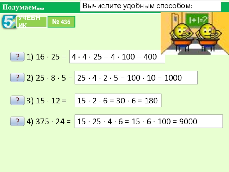 25 ∙ 4 ∙ 2 ∙ 5 = 100 ∙ 10 = 1000