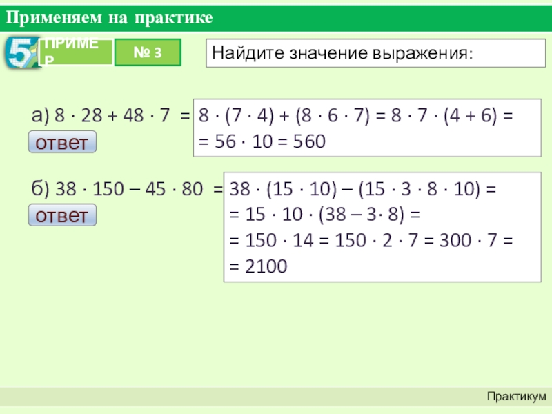 8 ∙ (7 ∙ 4) + (8 ∙ 6 ∙ 7) = 8 ∙ 7 ∙ (4 + 6) =