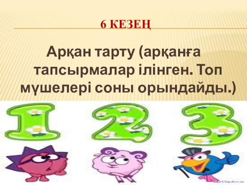 6 кезеңАрқан тарту (арқанға тапсырмалар ілінген. Топ мүшелері соны орындайды.)