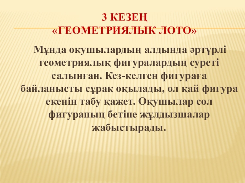 Слайд 83 кезең «Геометриялык лото»