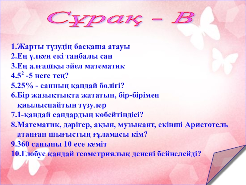 Это сайт презентаций, где можно хранить и обмениваться своими презентациями, докладами, проектами, шаблонами в формате PowerPoint с другими пользователями. Мы помогаем школьникам, студентам, учителям, преподавателям хранить и обмениваться учебными материалами.