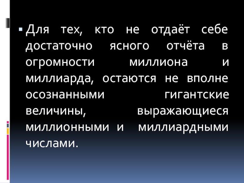 миллиона и миллиарда, остаются не вполне осознанными гигантские величины, выражающиеся миллионными и миллиардными числами.