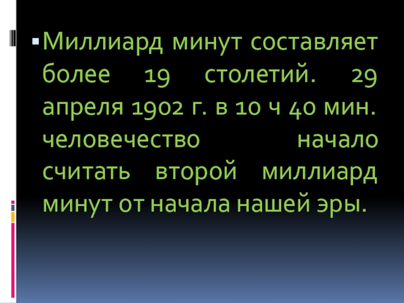 Миллиард минут составляет более 19 столетий. 29 апреля 1902 г. в
