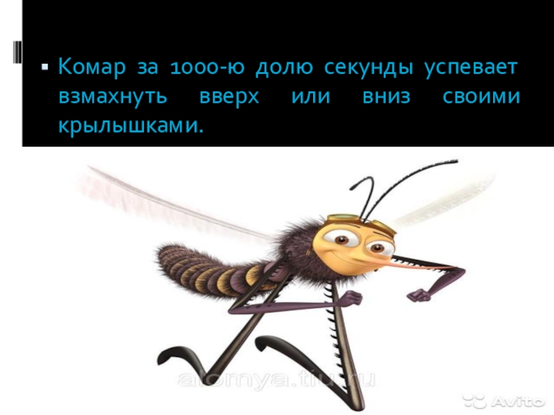 Комар за 1000-ю долю секунды успевает взмахнуть вверх или вниз своими