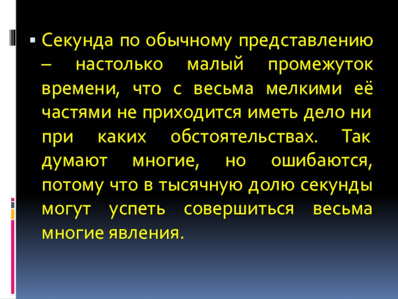 весьма мелкими её частями не приходится иметь дело ни при каких обстоятельствах. Так думают многие, но ошибаются, потому что в тысячную долю секунды могут успеть совершиться весьма многие явления.