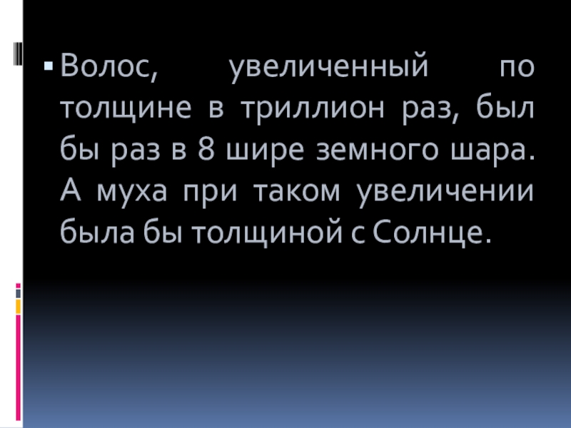 Волос, увеличенный по толщине в триллион раз, был бы раз в