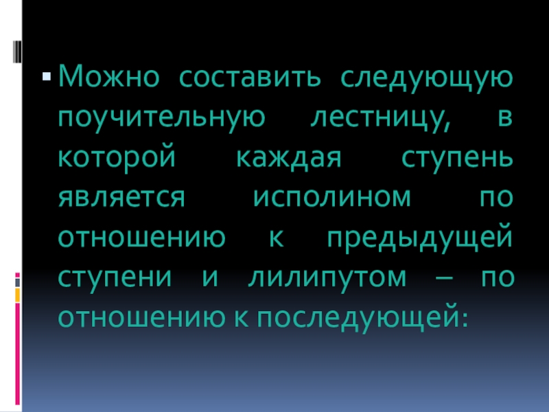 Можно составить следующую поучительную лестницу, в которой каждая ступень является исполином
