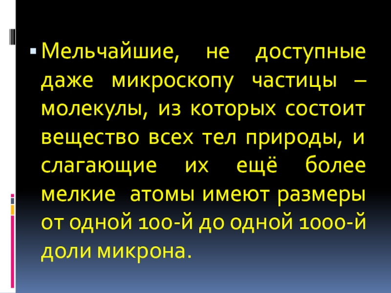 вещество всех тел природы, и слагающие их ещё более мелкие атомы имеют размеры от одной 100-й до одной 1000-й доли микрона.