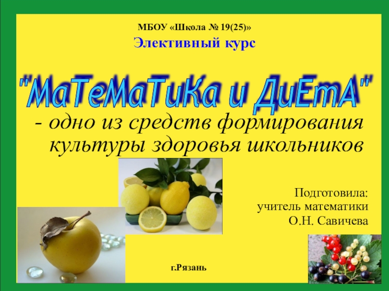 и почему для него полезно, а что вредно. Ответить на эти вопросы девятиклассникам поможет элективный курс «Математика и диета».