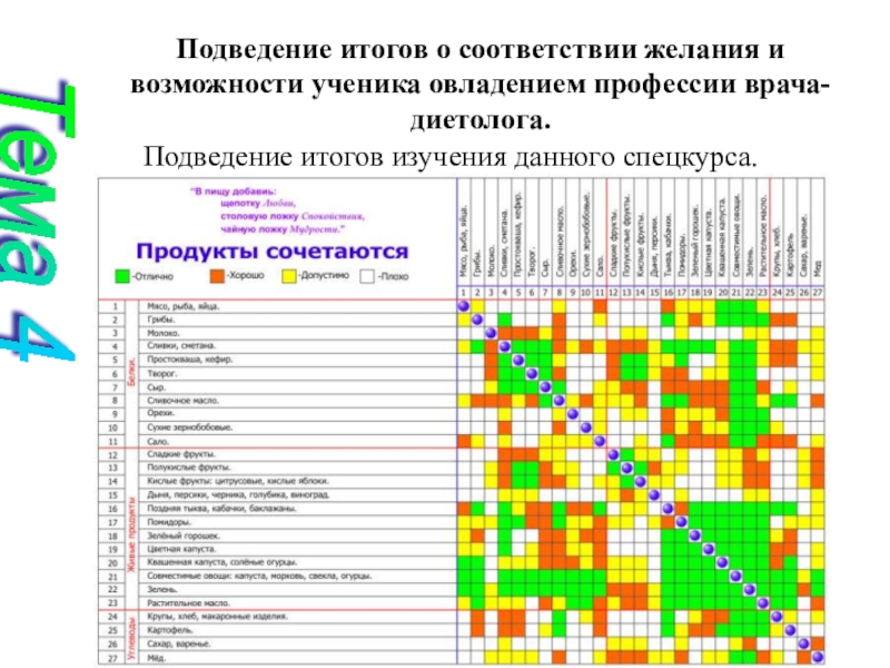 Слайд 14Подведение итогов о соответствии желания и возможности ученика овладением профессии врача-диетолога.