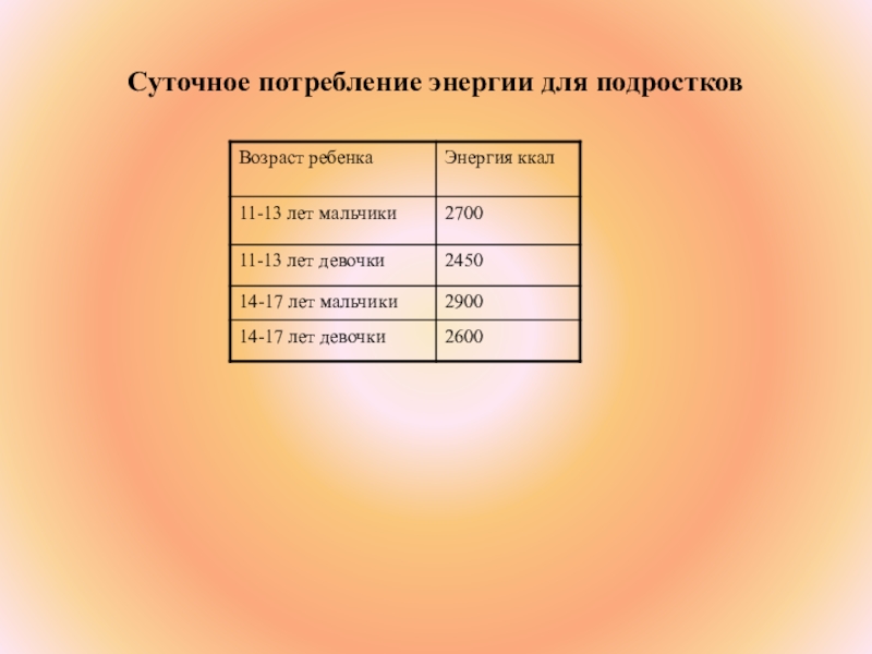 Расчет суточной потребности детей подросткового возраста в питательных веществах.
