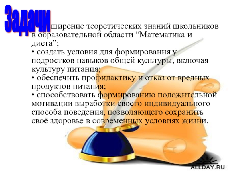 Слайд 6 • расширение теоретических знаний школьников в образовательной области “Математика