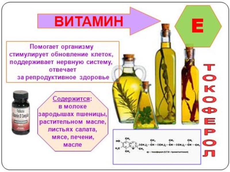 Витамин Е. Способствует развитию мышц, увеличивает долголетие, способствует нормальному развитию плода