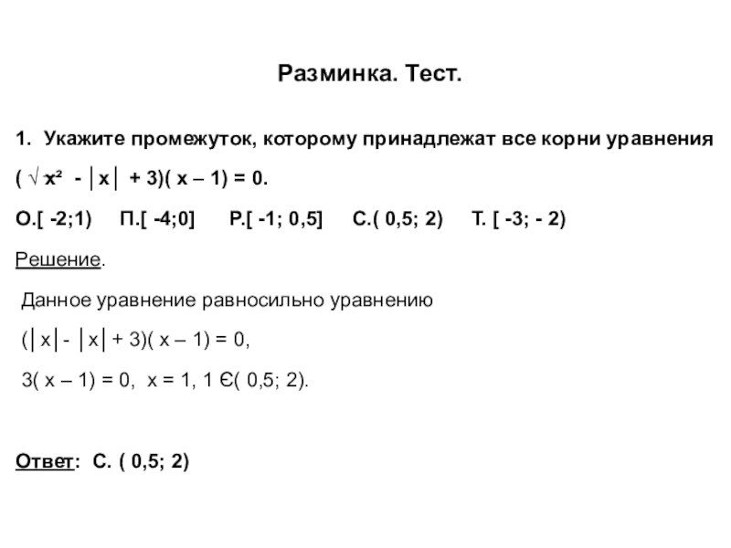 ( x – 1)( x + 2) = ( x – 2)( x + 1) х² + х – 2 = х² – х – 2, х = 0, ( x – 1)( x + 2) = - ( x – 2)( x + 1), х² + х – 2 = - х² + х + 2, х = ± √2.