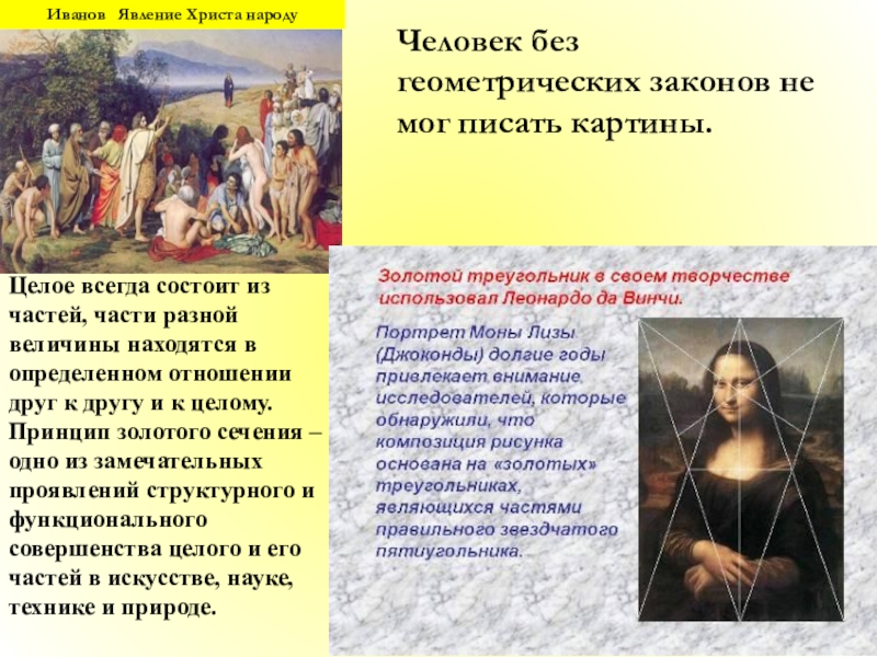 величины находятся в определенном отношении друг к другу и к целому. Принцип золотого сечения – одно из замечательных проявлений структурного и функционального совершенства целого и его частей в искусстве, науке, технике и природе.