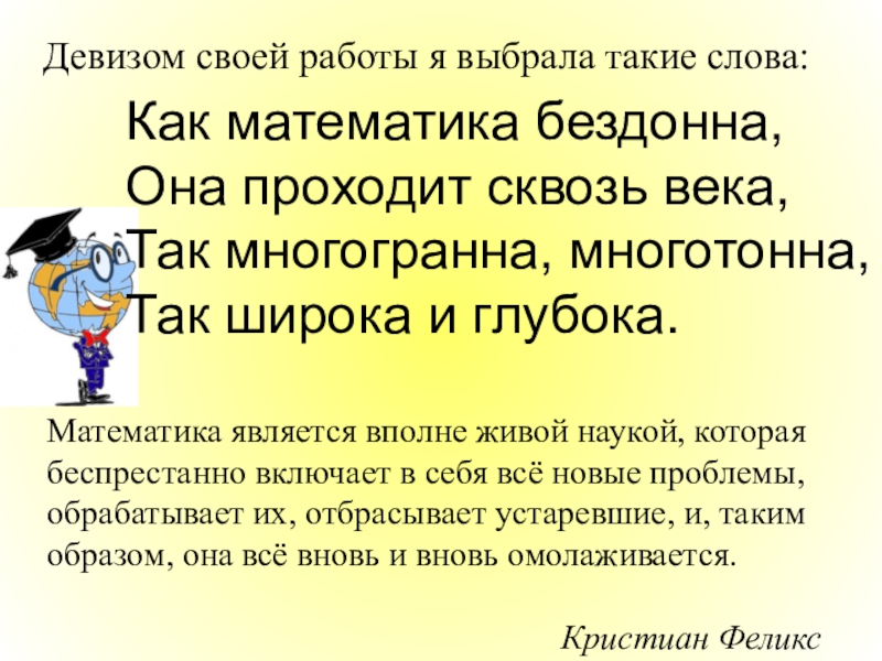 Слайд 6 В своей работе я решила объединить жизнь и математику