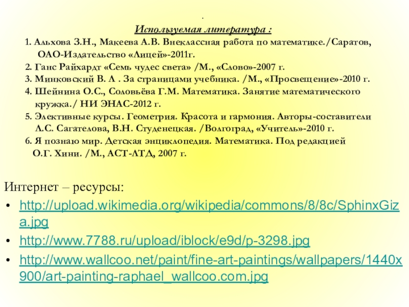 3. Минковский В. Л . За страницами учебника. /М., «Просвещение»-2010 г.