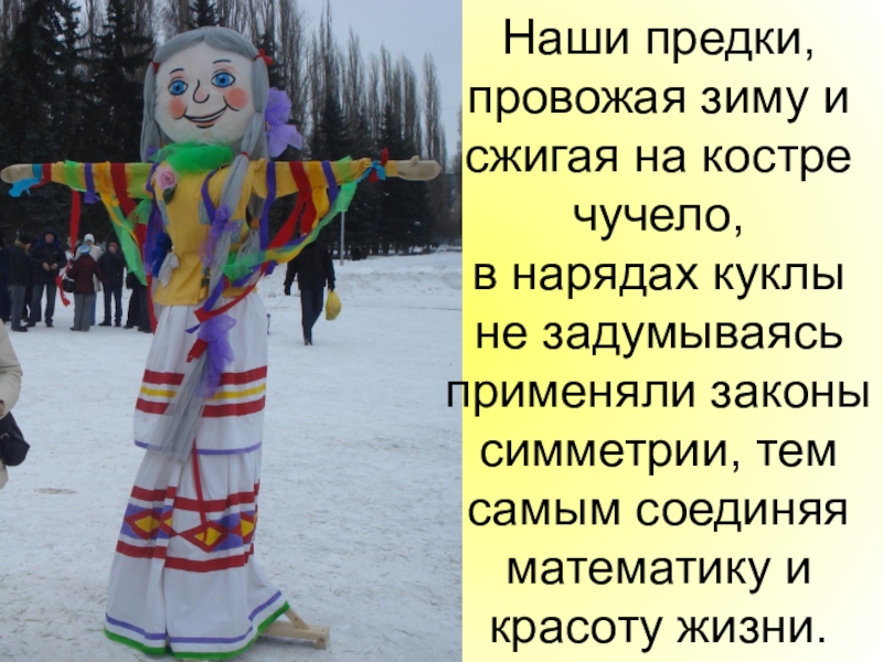 куклы не задумываясь применяли законы симметрии, тем самым соединяя математику и красоту жизни.