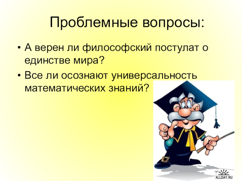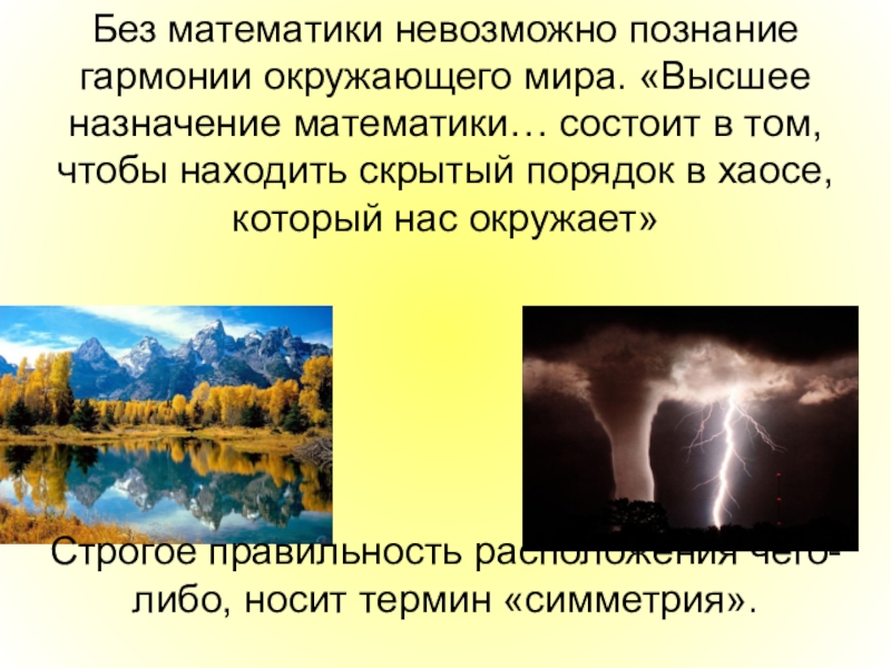 Слайд 7Без математики невозможно познание гармонии окружающего мира. «Высшее назначение математики… состоит