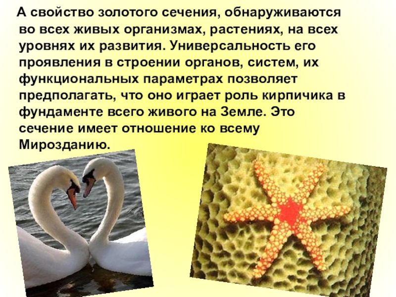 Слайд 10 А свойство золотого сечения, обнаруживаются во всех живых организмах,