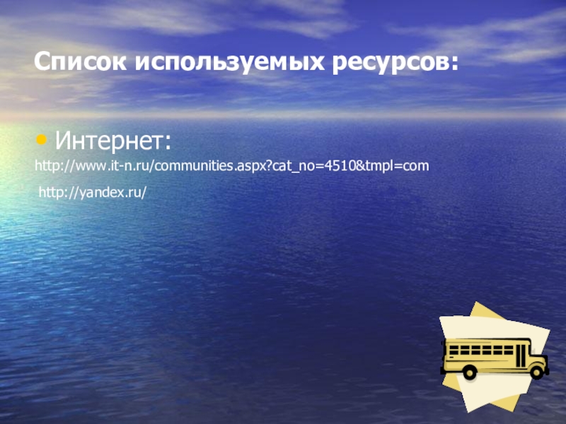 Это сайт презентаций, где можно хранить и обмениваться своими презентациями, докладами, проектами, шаблонами в формате PowerPoint с другими пользователями. Мы помогаем школьникам, студентам, учителям, преподавателям хранить и обмениваться учебными материалами.