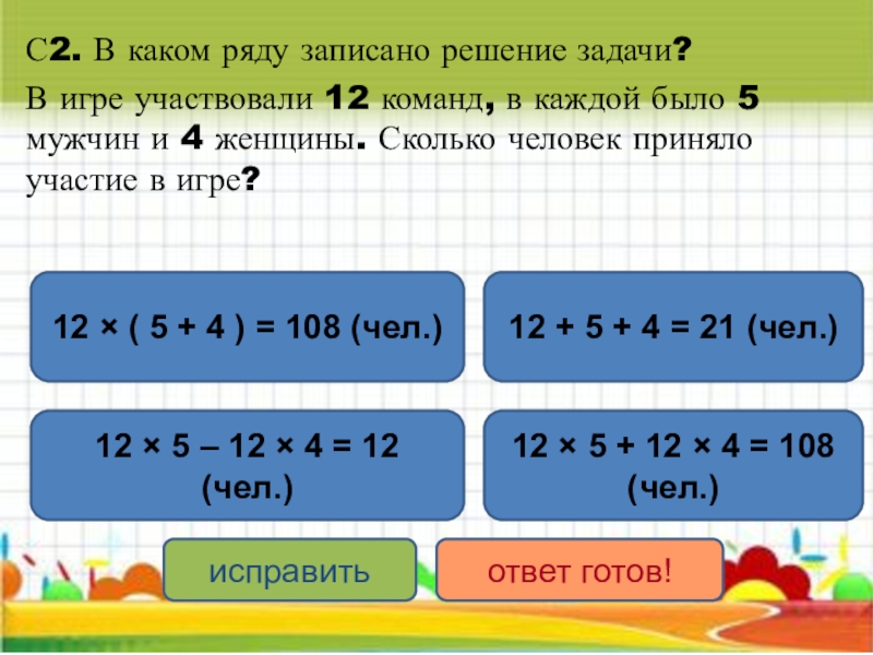 12 × ( 5 + 4 ) = 108 (чел.)