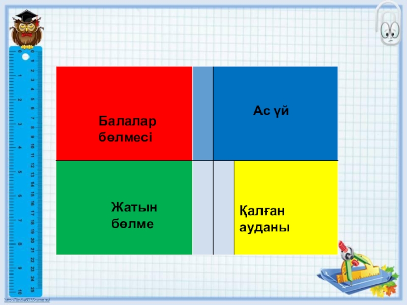 Балалар бөлмесі	Ас үйЖатын бөлмеҚалған ауданы
