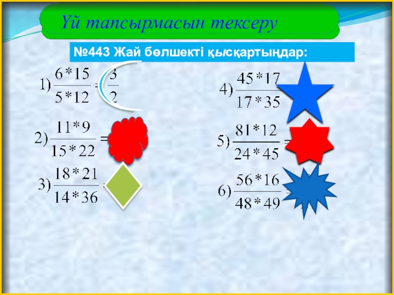 Үй тапсырмасын тексеру№443 Жай бөлшекті қысқартыңдар:
