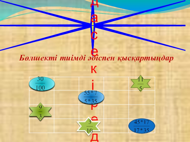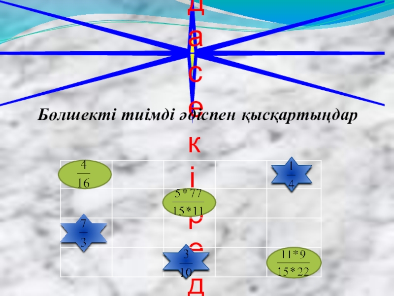Презентация, доклад на тему Математика пәнінен презентация Жай бөлшектің негізгі қасиеті. Жай бөлшекті қысқарту.