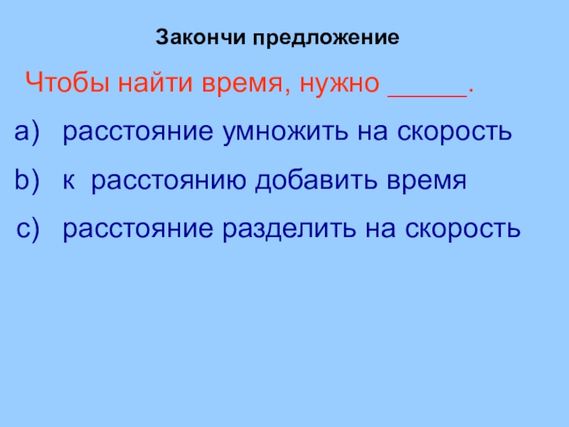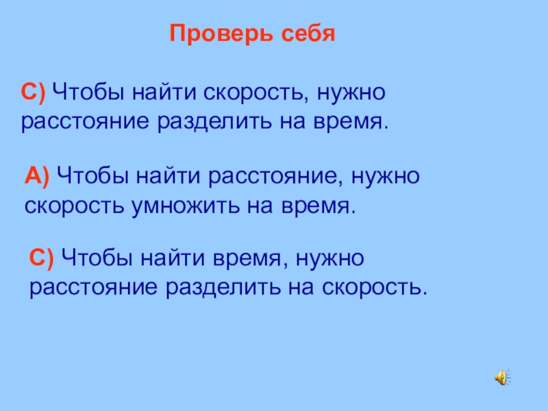 С) Чтобы найти время, нужно расстояние разделить на скорость.
