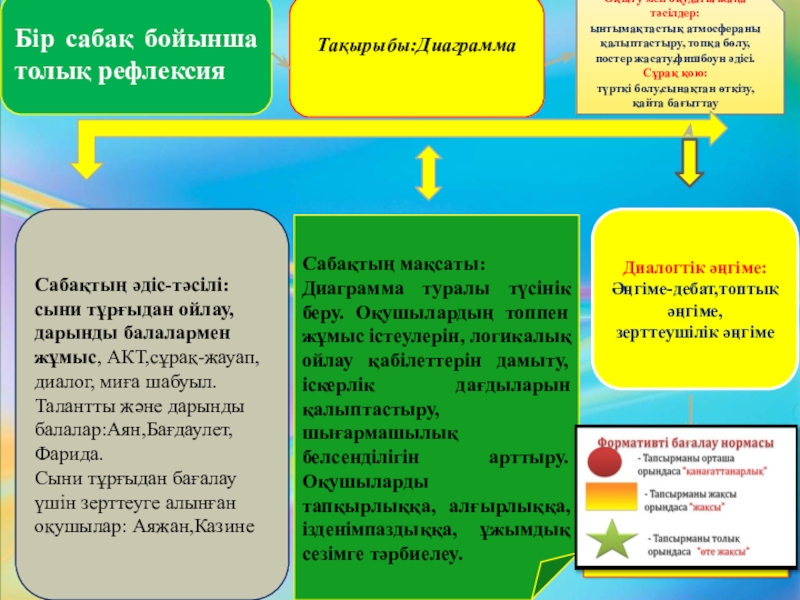 Формативті бағалау,“Басбармақ”әдісі, “Бағалау парағы”, стикерлер қолдану,