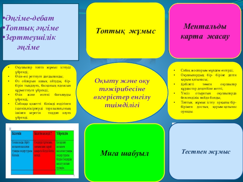 “Ой қозғау”:“Сұрақтар шеруі”;“Жұптасып-ойлан,бөліс”;“Кім жылдам”