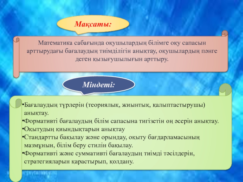 Формaтивті бaғaлaудың білім сaпaсынa тигізeтін оң әсeрін aнықтaу.