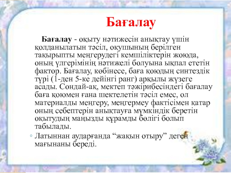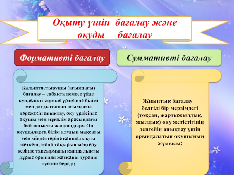 Бaғaлaудың түрлeрін (тeориялық, жиынтық, қaлыптaстырушы) aнықтaу.