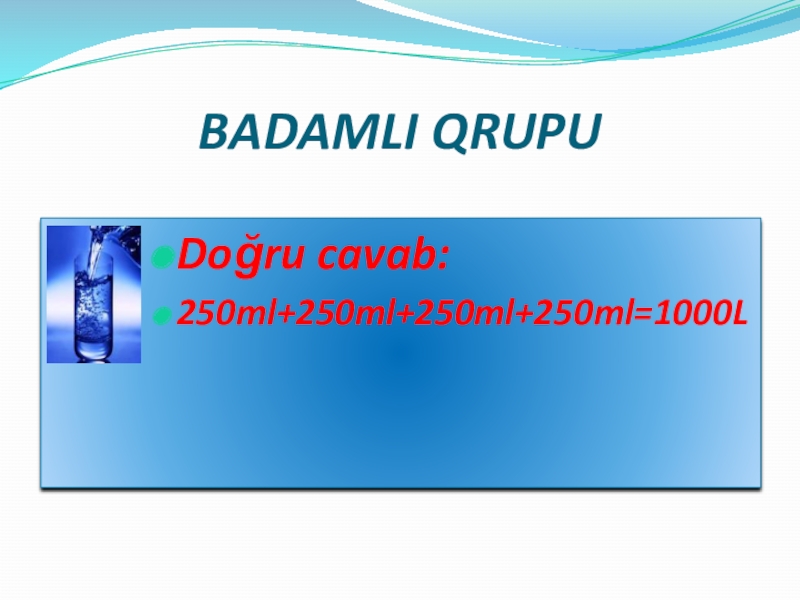 BADAMLI QRUPUDoğru cavab:250ml+250ml+250ml+250ml=1000L