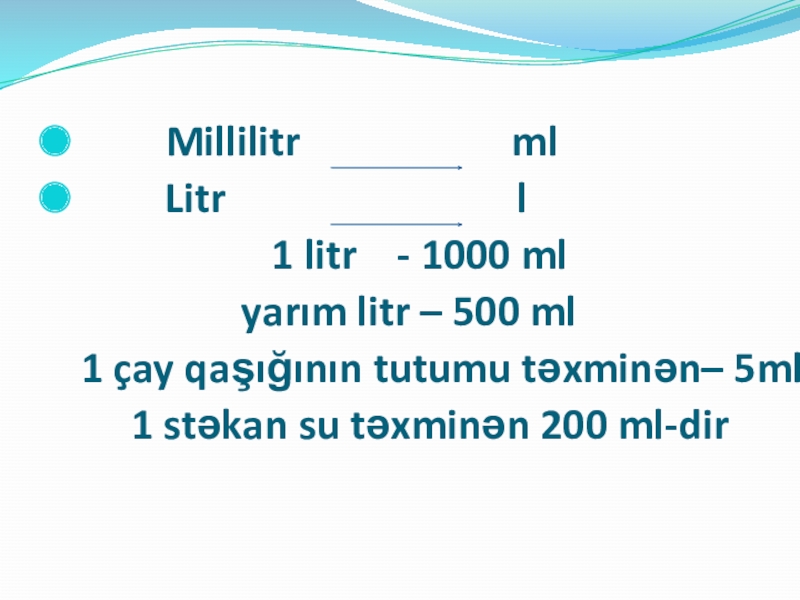 Слайд 11Millilitrlə, litirlə daha hansı mayeləri ölçə bilərik?